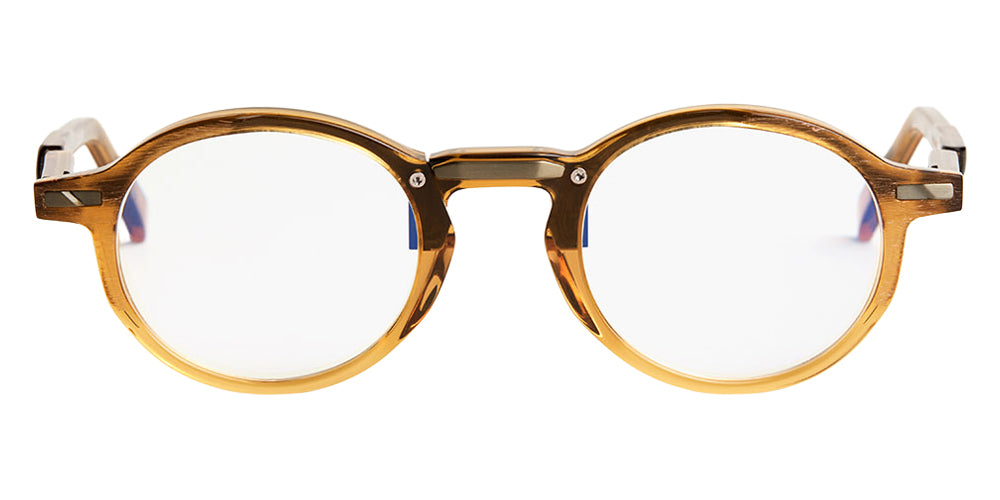 Crystal Honey Eyeglasses (Alias 02 46) by Movitra. Size: 46-23-145, Shape: Round, Material: Acetate.
