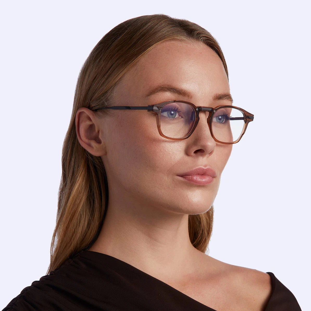 Light Brown Eyeglasses (AM 02 F Light Brown 49) by Movitra™. Size: 49-21-145, Shape: Wayfarer, Material: Acetate.