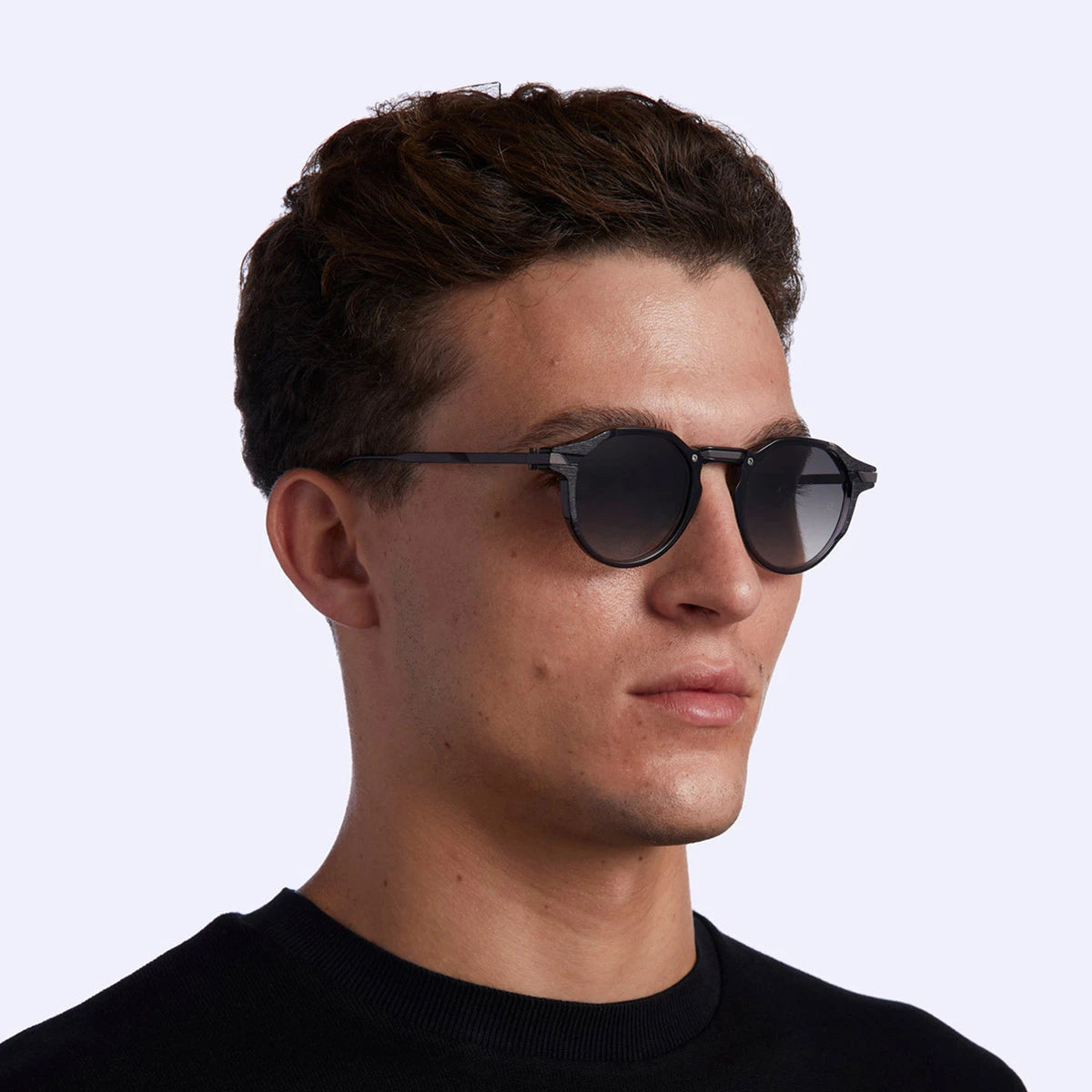 AM 03 D Sunglasses by Movitra™. The wayfarer shape design feature a full rim acetate frame. This model is available in two different color combinations and sizes. Born from the heart of Italy's timeless tradition of artisanal excellence, Movitra has emerged as a beacon of sophistication, blending centuries-old techniques with cutting-edge innovation to create eyewear that transcends mere function and becomes a true work of art. The brand's story is a captivating tale, woven through the fabric of Italian culture itself. Movitra's origins can be traced back to the Renaissance era, when Italian artisans revolutionized the art of eyewear making, infusing their creations with an unparalleled level of detail and precision. This legacy has been carefully preserved and passed down through generations, with each pair of Movitra eyewear serving as a testament to the enduring spirit of Italian craftsmanship. What sets Movitra apart, however, is its ability to seamlessly marry tradition with modernity. Embracing the tagline "Two Souls. One Brand," Movitra masterfully fuses the essence of "Made In Italy" with a forward-thinking approach to design and technology. This harmonious coexistence of heritage and innovation is evident in every aspect of Movitra's creations, from the meticulously handcrafted frames to the incorporation of cutting-edge materials and advanced optical technology.