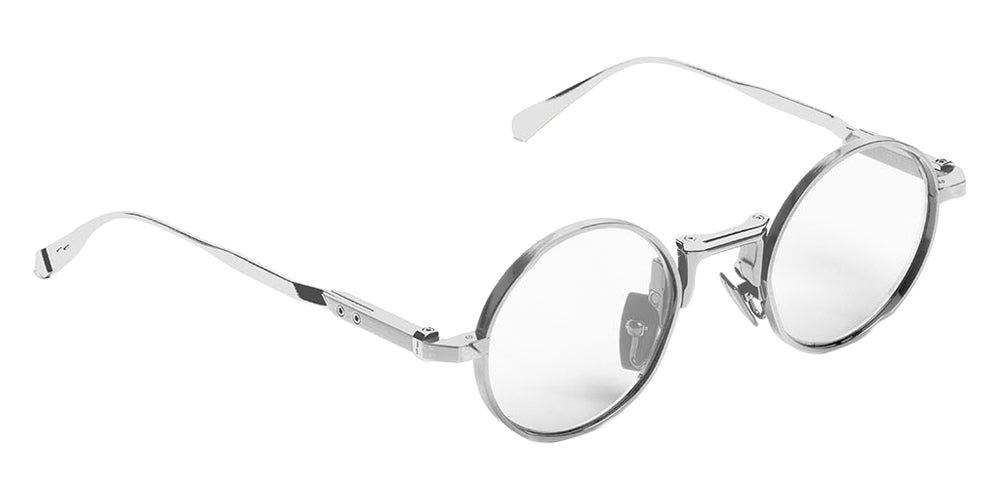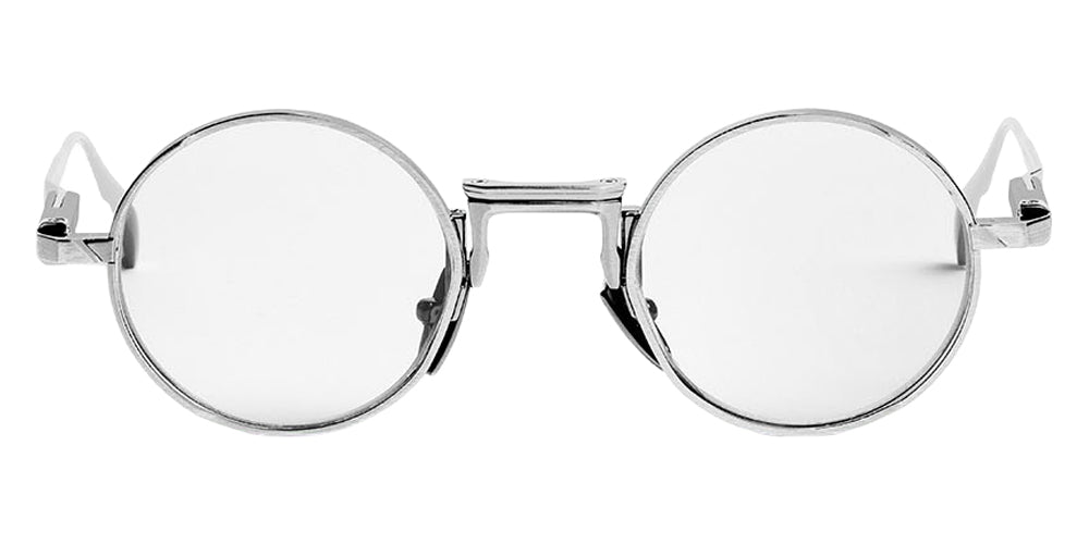 Brushed Light Gun & Polished Light Gun Eyeglasses (Apex 04 47) by Movitra. Size: 47-23-145, Shape: Round, Material: Titanium.