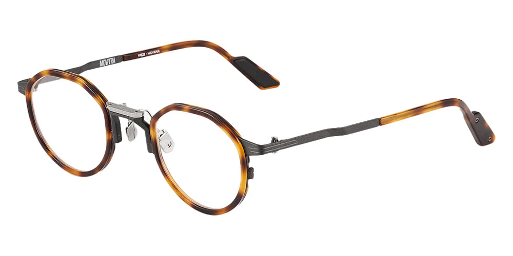Havana Eyeglasses (CM 01 V Havana 47) by Movitra™. Size: 47-27-145, Shape: Round, Material: Acetate and Stainless Steel.