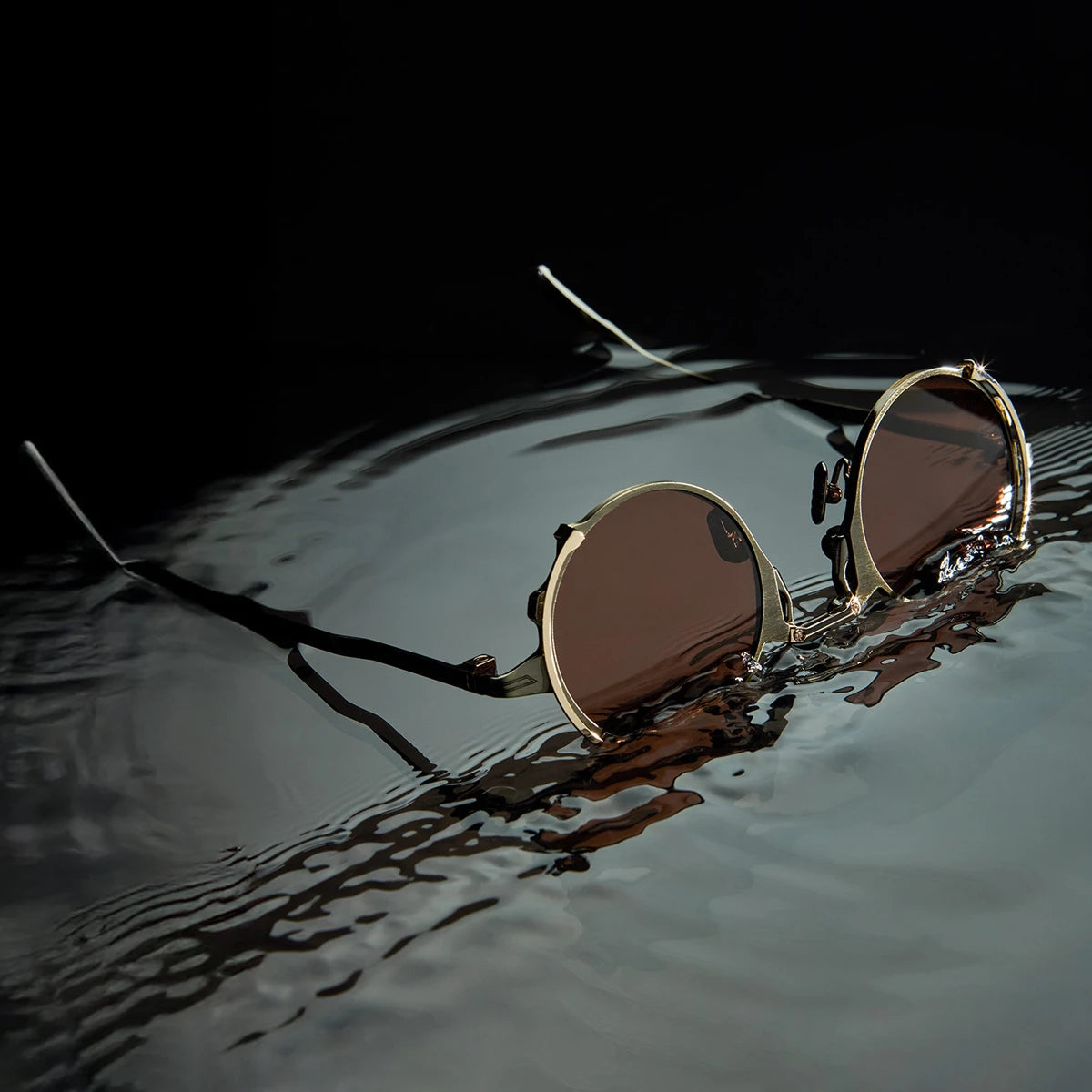Polished Rose Gold Sunglasses (Tectum 01 46) by Movitra™. Size: 46-25-145, Shape: Round, Material: Titanium.