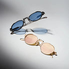 Gun Sunglasses with Blue with Flare Blue Navy lenses (TN 01 B Sun Gun 48) by Movitra™. Size: 48-25-145, Shape: Round, Material: Titanium.