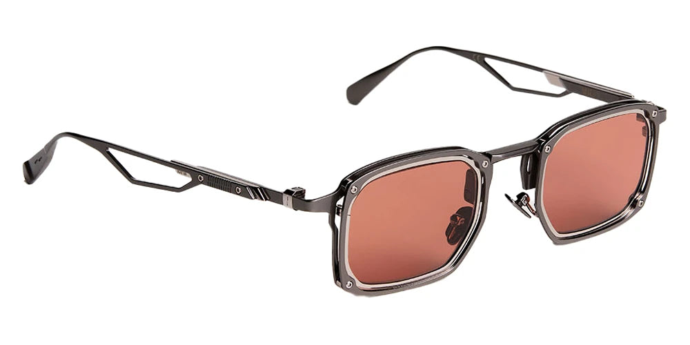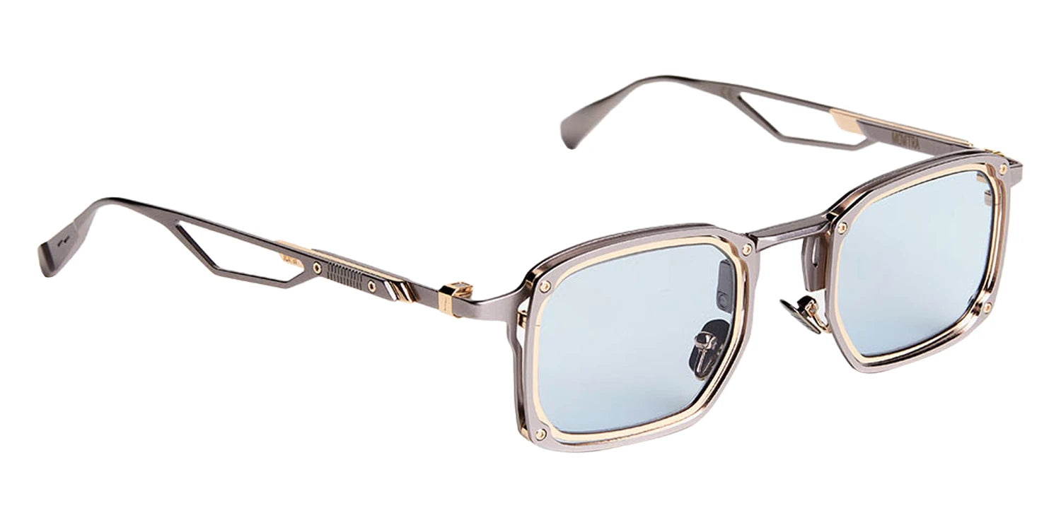 Polished Light Gun Sunglasses (Trinitas 02 46) by Movitra™. Size: 46-24-145/148, Shape: Rectangle, Material: Acetate and Titanium.