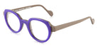 | Frame color options: | Dark Gray/Blonde Horn, Plum/Slate Gray, Purple/Beige, Brown Tortoiseshell/Pink, Translucent Purple/Translucent Orange |