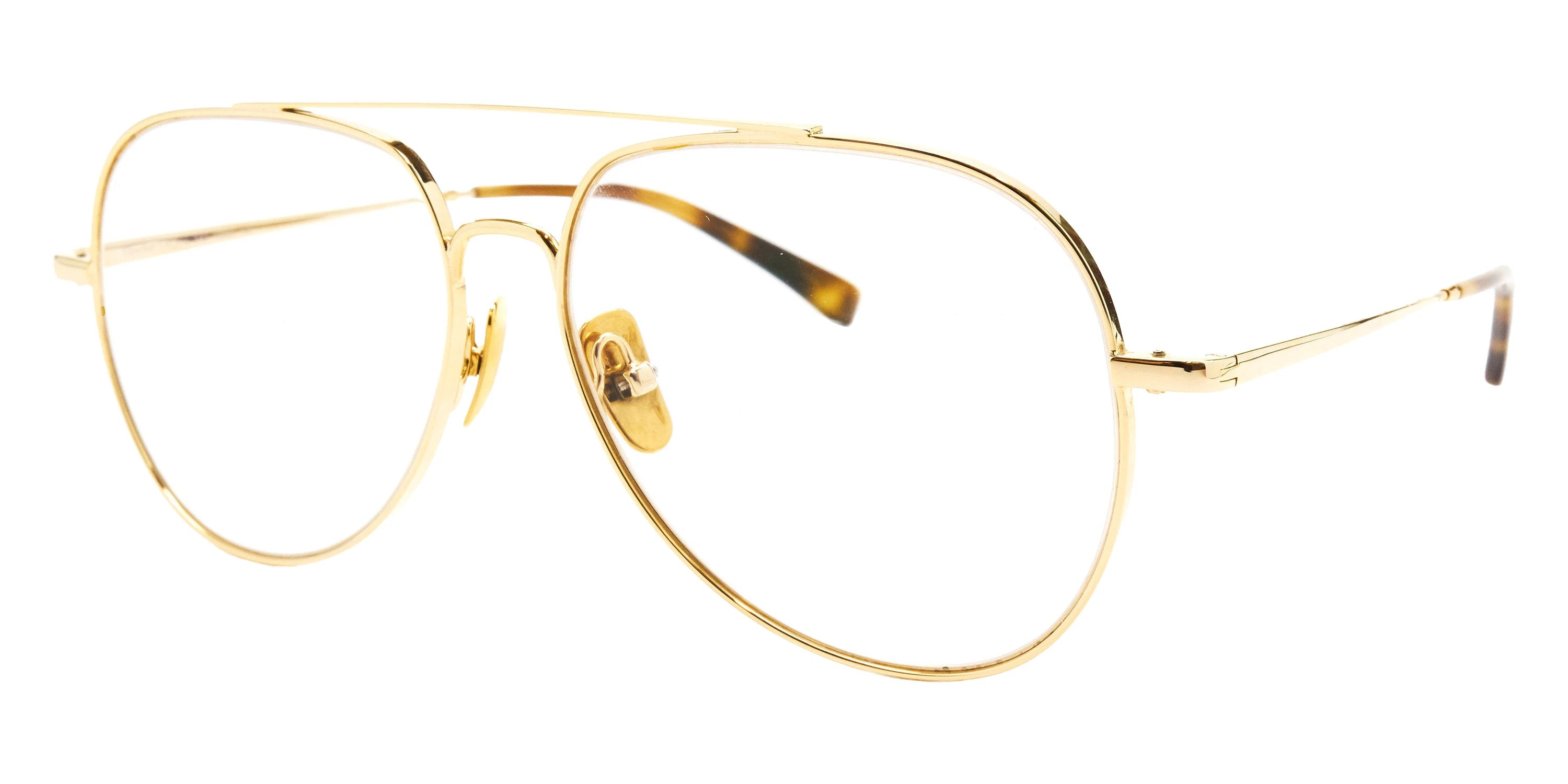 Shiny Gold Eyeglasses (Bleecker 59) by Native Ken™. Size: 59-14-145, Shape: Aviator, Material: Acetate.