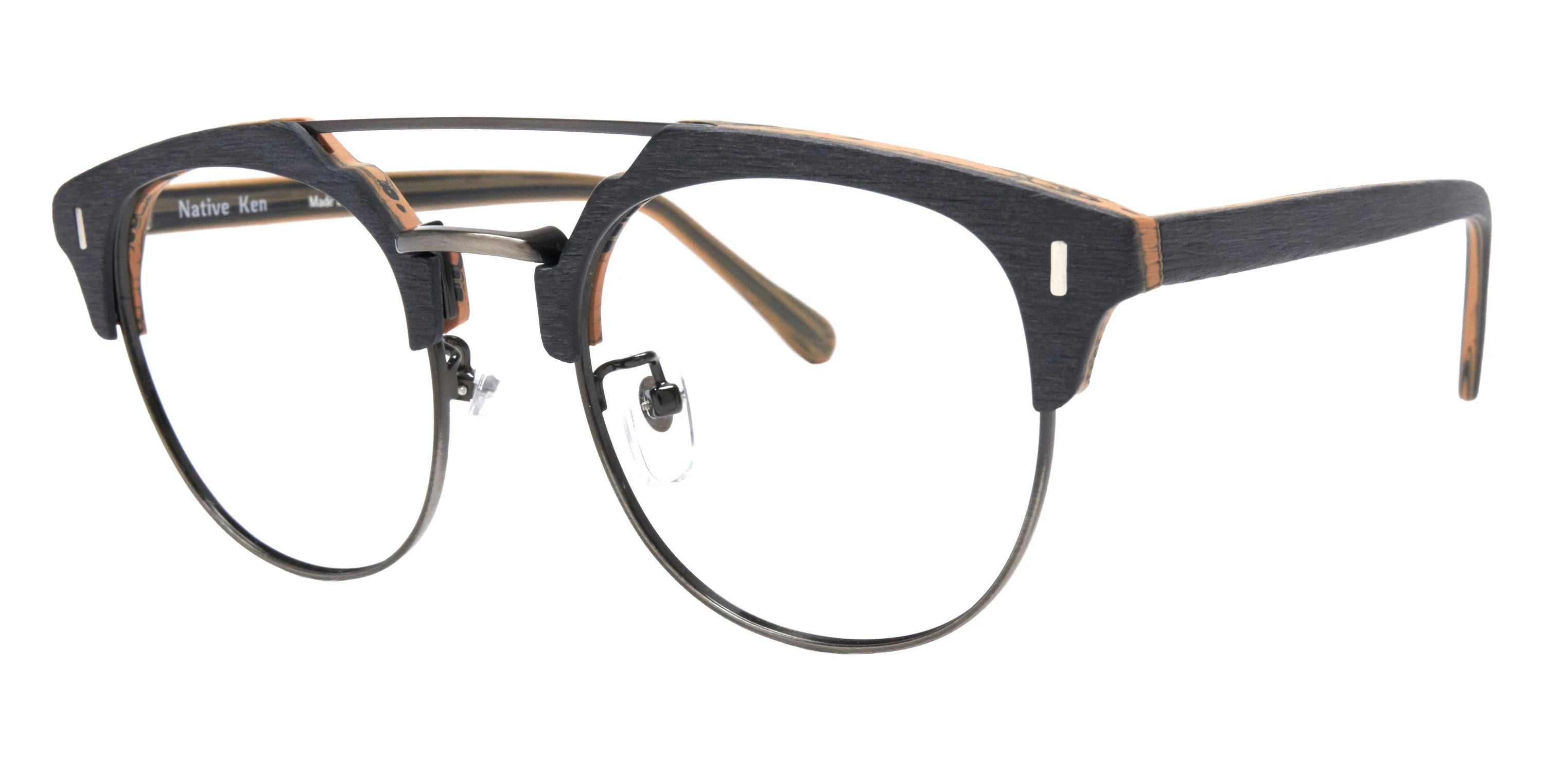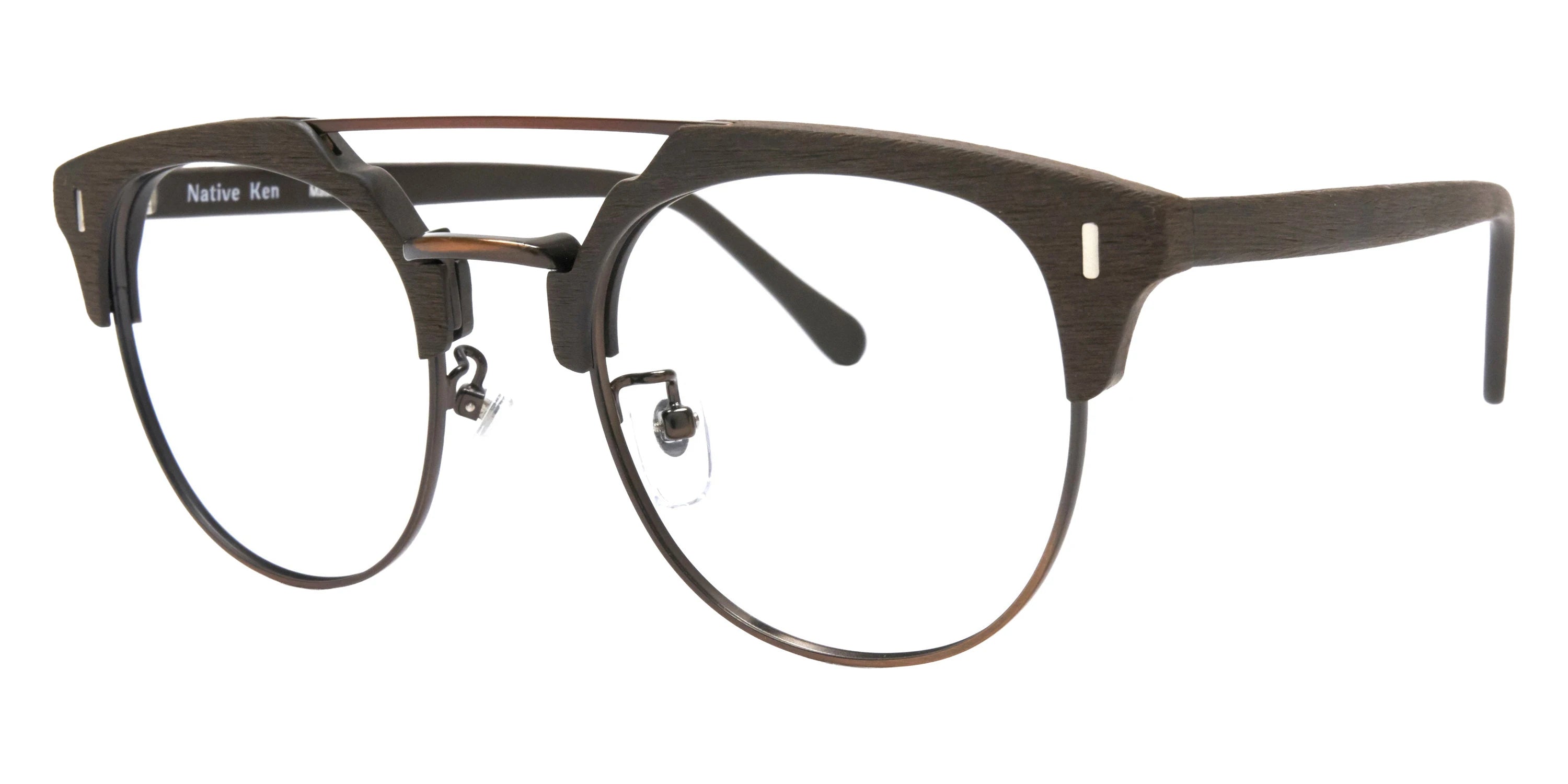 Two-Tone Brown on Gray Eyeglasses (Hanover 51) by Native Ken™. Size: 51-20-143, Shape: Round, Material: Acetate and Metal.