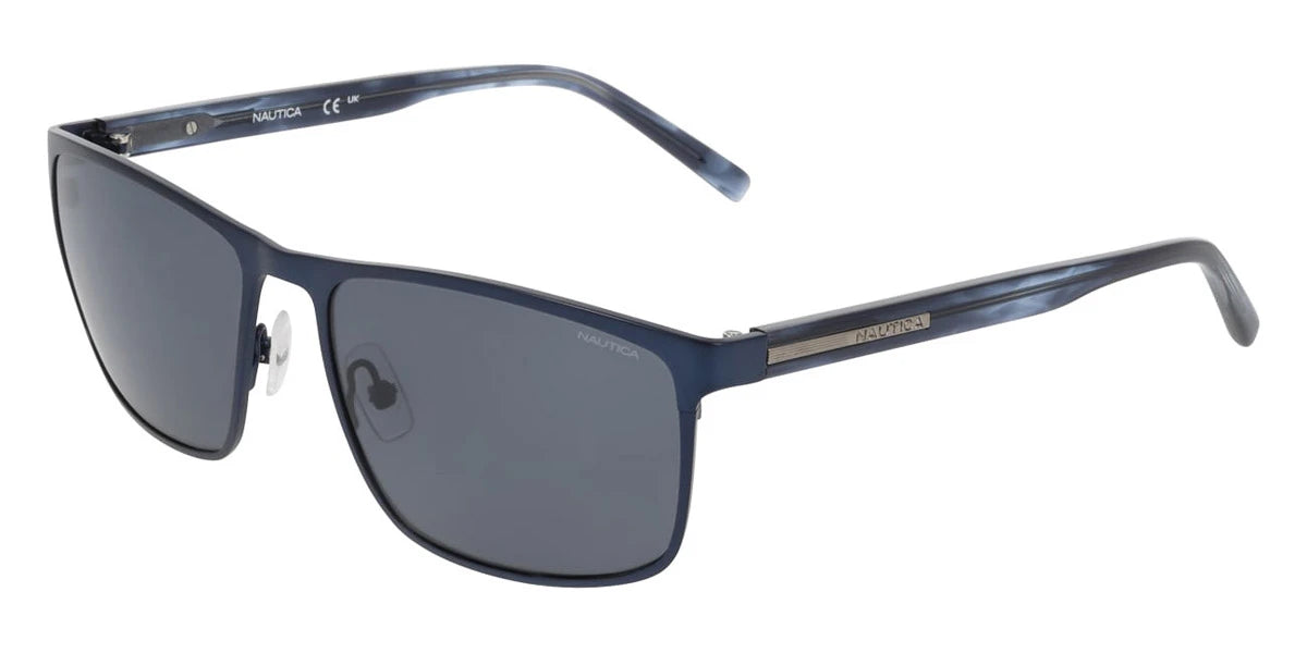 Satin Navy (420) Sunglasses (N5153S 420 58) by Nautica™. Size: 58-17-145, Shape: Rectangle, Material: Metal.