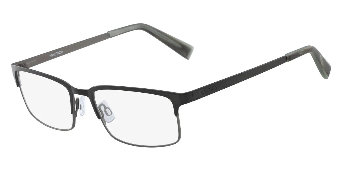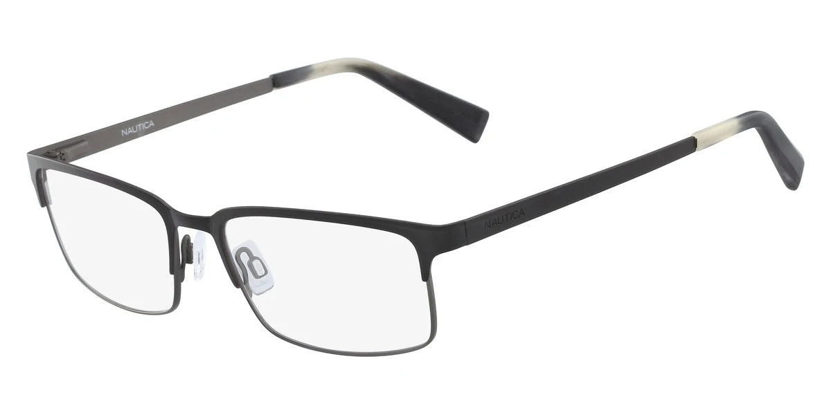 Black (001) Eyeglasses (N7270 001 52) by Nautica™. Size: 52-17-140, Shape: Rectangle, Material: Metal.