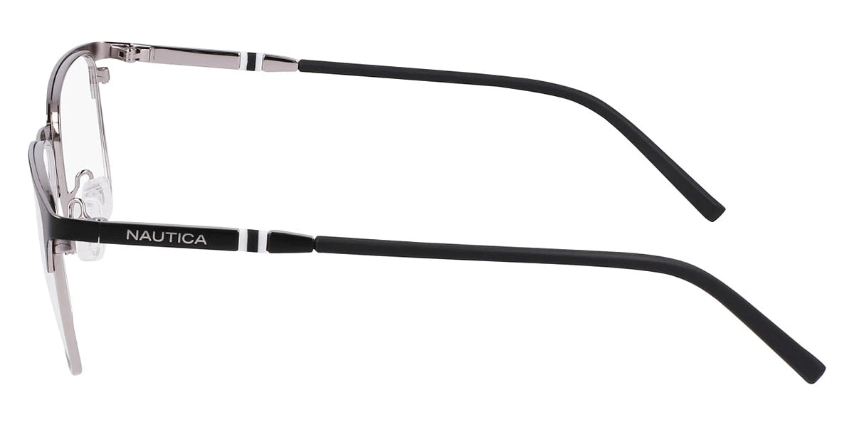 Matte Black (005) Eyeglasses (N7336 005 52) by Nautica™. Size: 52-19-145, Shape: Rectangle, Material: Metal.