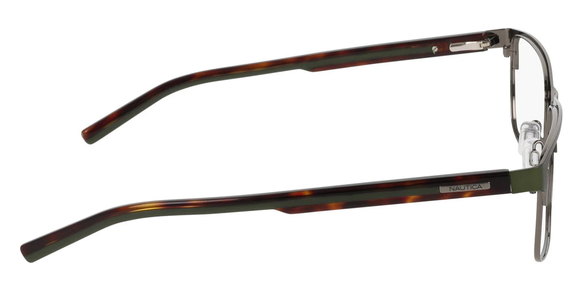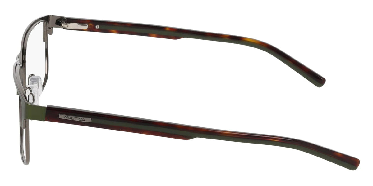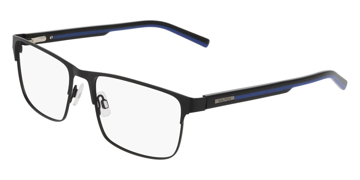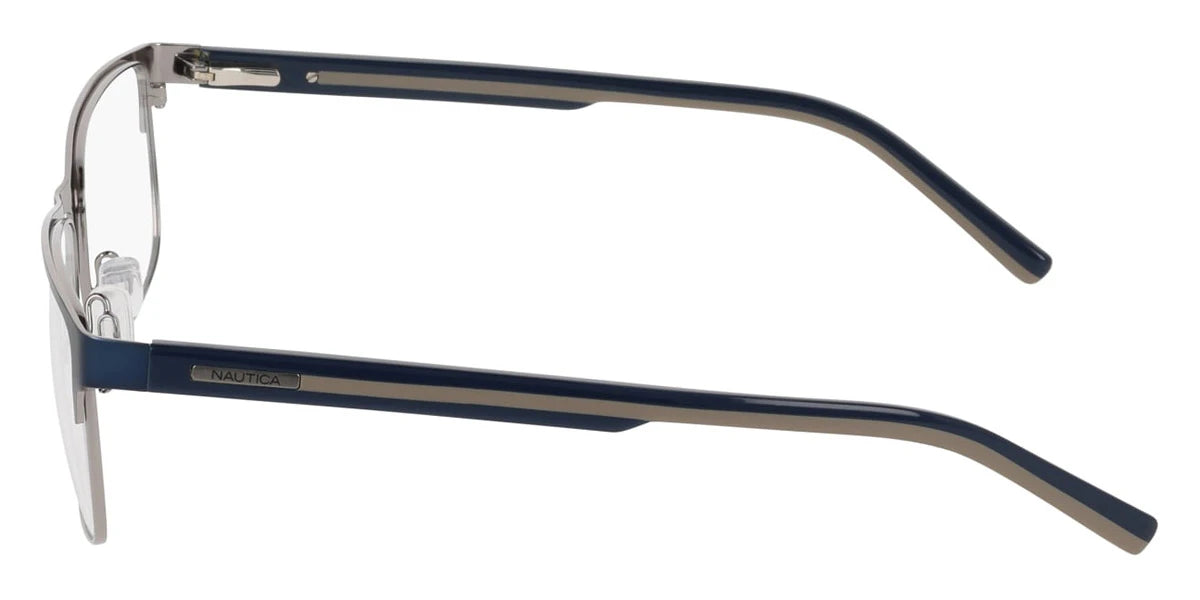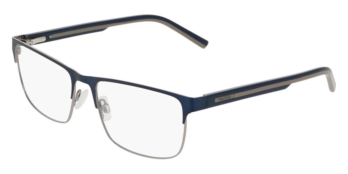 Satin Navy (420) Eyeglasses (N7350 420 56) by Nautica™. Size: 56-17-145, Shape: Rectangle, Material: Metal.