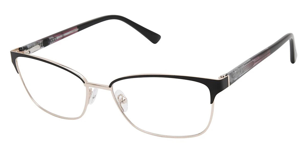 Matte Black (c01) Eyeglasses (Bristol c01 58) by Nicole Miller™. Size: 58-17-140, Shape: Rectangle, Material: Plastic and Metal.