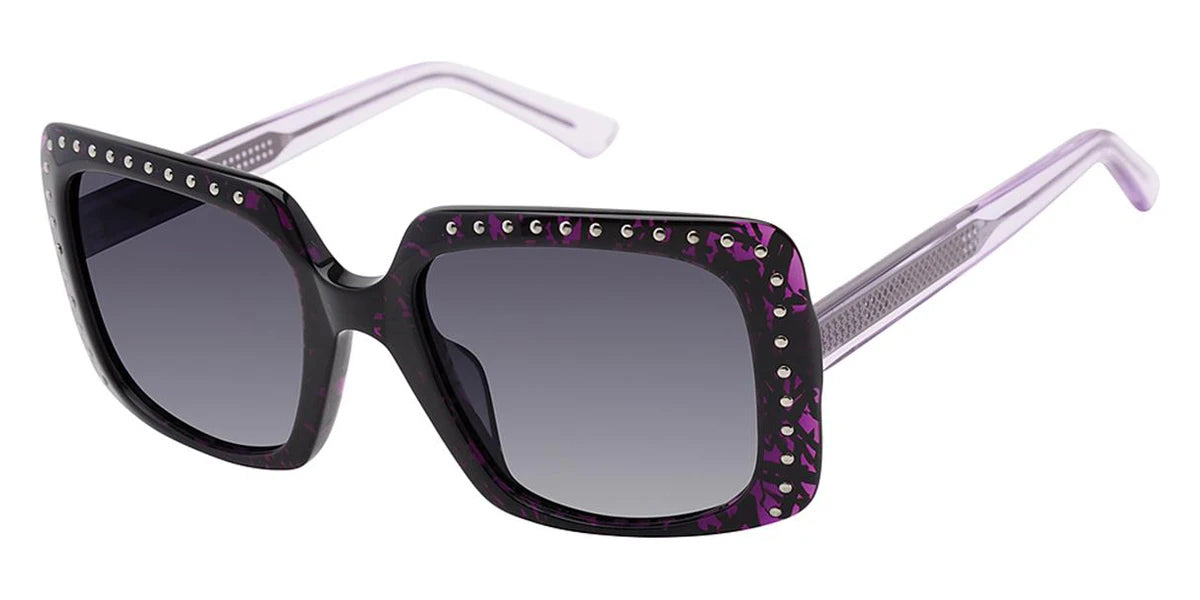 Purple (c03) Sunglasses with Gray Gradient Polarized lenses (BUCI c03 54) by Nicole Miller™. Size: 54-20-140, Shape: Oversized, Material: Acetate.