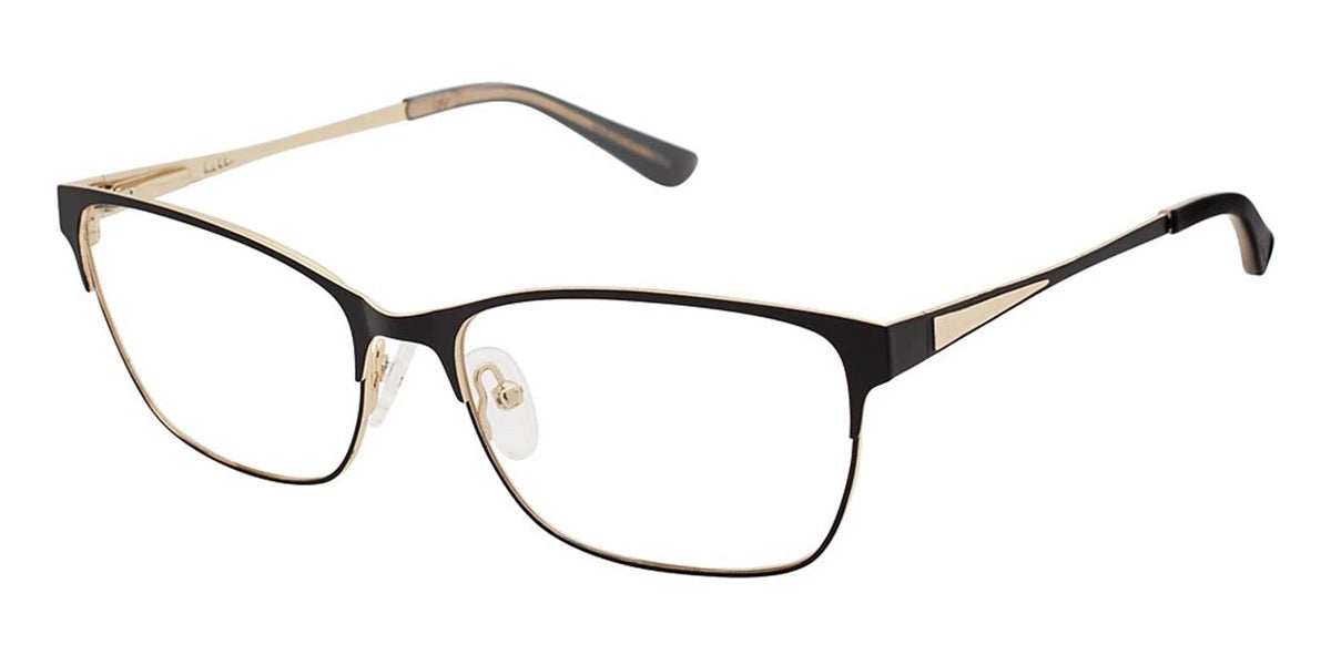 Black/Gold (c01) Eyeglasses (Glenmore c01 55) by Nicole Miller™. Size: 55-16-135, Shape: Cat-Eye, Material: Metal.