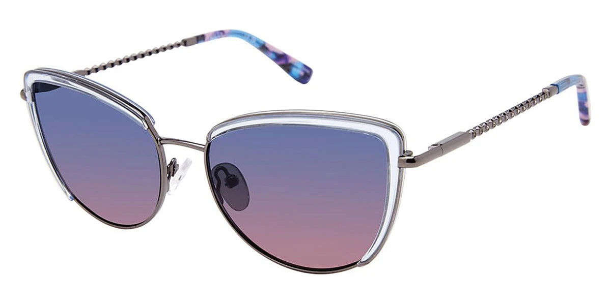 Blue Crystal (c03) Sunglasses with Blue Pink Gradient Polarized lenses (MONTE CARLO c03 54) by Nicole Miller™. Size: 54-16-135, Shape: Cat-Eye, Material: Metal.