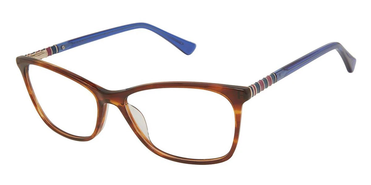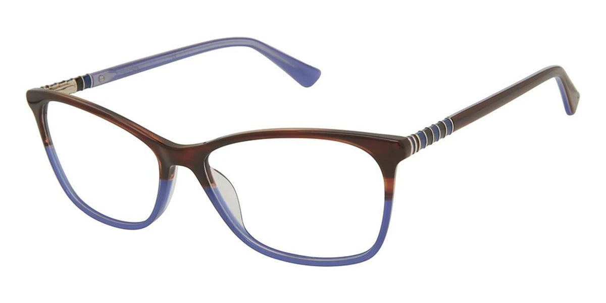 Brown Horn (c01) Eyeglasses (Saint Tropez c01 58) by Nicole Miller™. Size: 58-16-140, Shape: Square, Material: Plastic.
