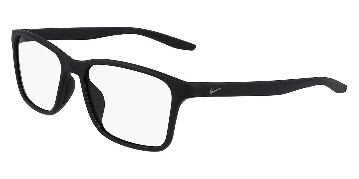 Matte Black (001) Eyeglasses (7117 001 56) by Nike™. Size: 56-16-140, Shape: Square, Material: Plastic.