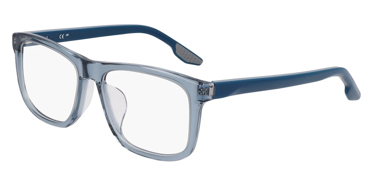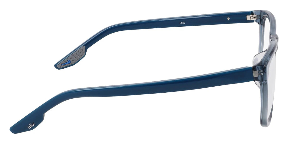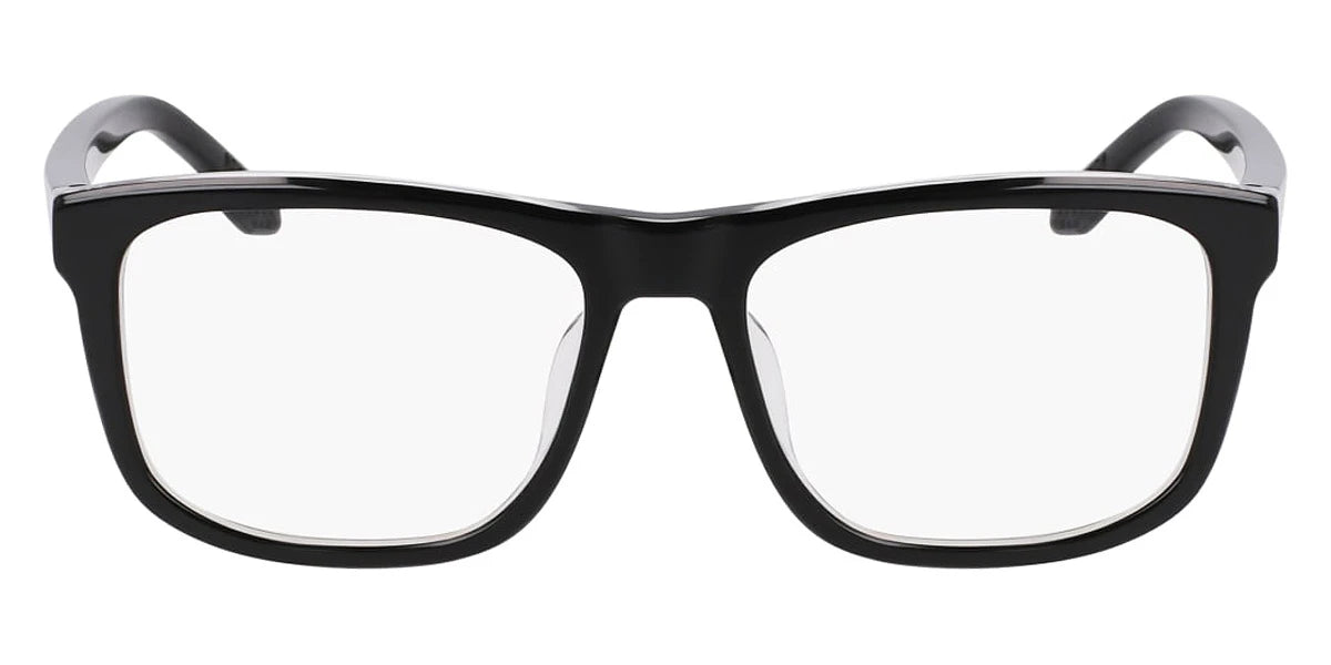 Black/Crystal Clear (010) Eyeglasses (7163LB 010 55) by Nike™. Size: 55-17-150, Shape: Square, Material: Rec Acetate-Renew.