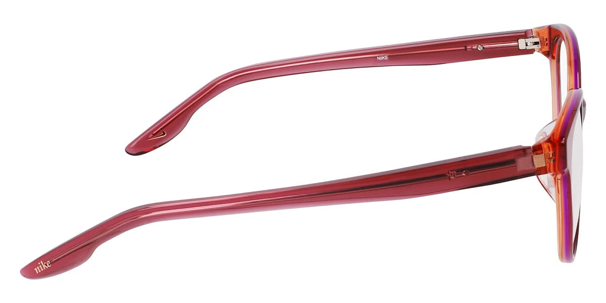 7164LB Eyeglasses by Nike™. The cat-eye shape design feature a full rim rec acetate-renew frame. This model is available in four different color combinations and sizes. Nike is a world-known company that designs, develops, manufactures, and sells its famous apparel, footwear, accessories, equipment, and services. Being one of the largest suppliers of sports apparel and shoes for athletes, the brand employs more than 76,000 people all over the globe. In 1964, Phil Knight and Bill Bowerman launched the company “Blue Ribbon Sports” that later took the name of the Greek goddess of victory, and became Nike officially in May 1971. The brand offers high-quality eyewear collections that are made to meet impeccable standards found in this manufacturer’s other products. With rugged frames and stylish looks, it’s easy to bring a sports-minded image to any outfit.