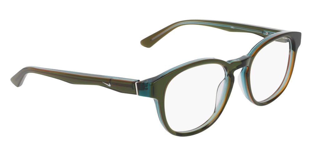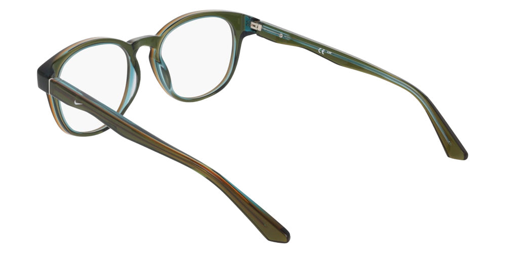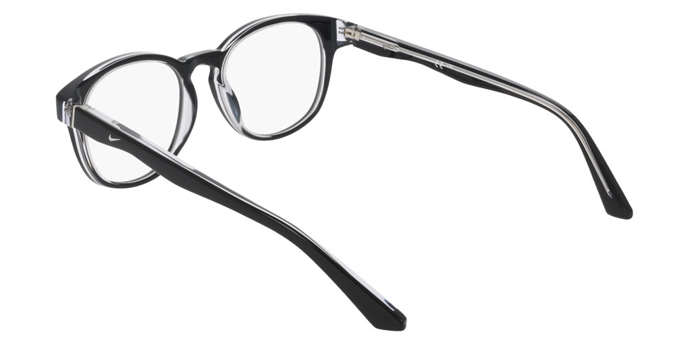 Black/Crystal Laminate (010) Eyeglasses (7182 010 51) by Nike. Size: 51-19-145, Shape: Round, Material: Rec Acetate-Renew.