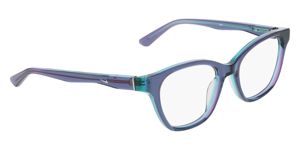 Charcoal/Gray Laminate (020) Eyeglasses (7183 020 51) by Nike. Size: 51-19-140, Shape: Cat-Eye, Material: Rec Acetate-Renew.