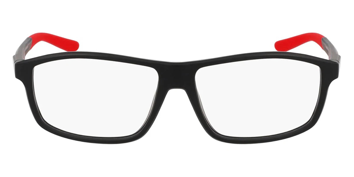 Matte Black/University Red (006) Eyeglasses (7291 006 56) by Nike™. Size: 56-14-145, Shape: Rectangle, Material: Injected.