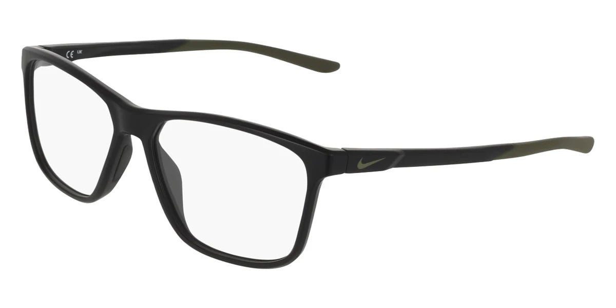 Black/Cargo Khaki (001) Eyeglasses (7293 001 58) by Nike™. Size: 58-15-145, Shape: Rectangle, Material: Injected.