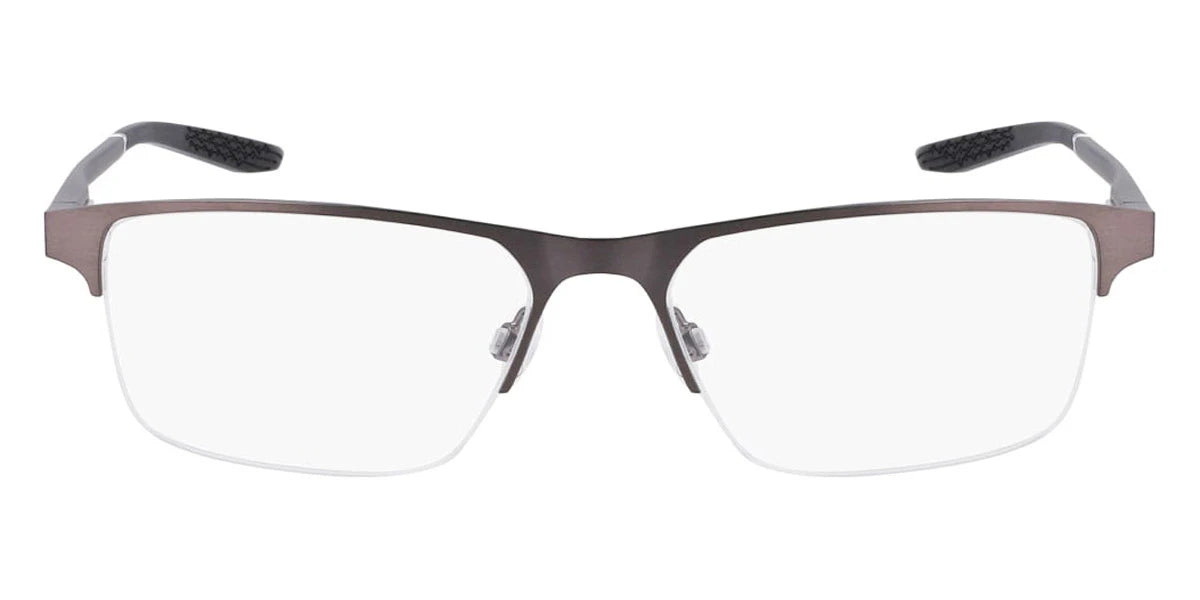 Satin Black/Wolf Gray (004) Eyeglasses (8045 004 57) by Nike™. Size: 57-17-140, Shape: Rectangle, Material: Stainless.