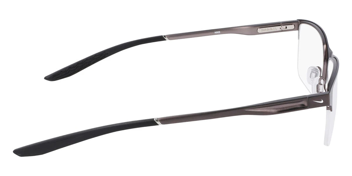 8045 Eyeglasses by Nike™. Shape: Rectangle, Material: Stainless, Frame Type: Half Rim. This model is available in four different color combinations and sizes. Nike is a world-known company that designs, develops, manufactures, and sells its famous apparel, footwear, accessories, equipment, and services. Being one of the largest suppliers of sports apparel and shoes for athletes, the brand employs more than 76,000 people all over the globe. In 1964, Phil Knight and Bill Bowerman launched the company “Blue Ribbon Sports” that later took the name of the Greek goddess of victory, and became Nike officially in May 1971. The brand offers high-quality eyewear collections that are made to meet impeccable standards found in this manufacturer’s other products. With rugged frames and stylish looks, it’s easy to bring a sports-minded image to any outfit.