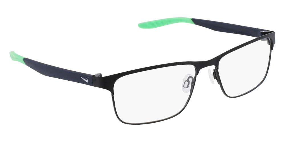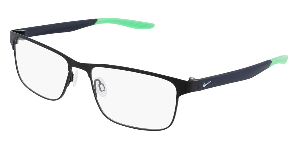 Satin Black/Electro Green (005) Eyeglasses (8130 005 54) by Nike. Size: 54-16-140, Shape: Rectangle, Material: Metal.