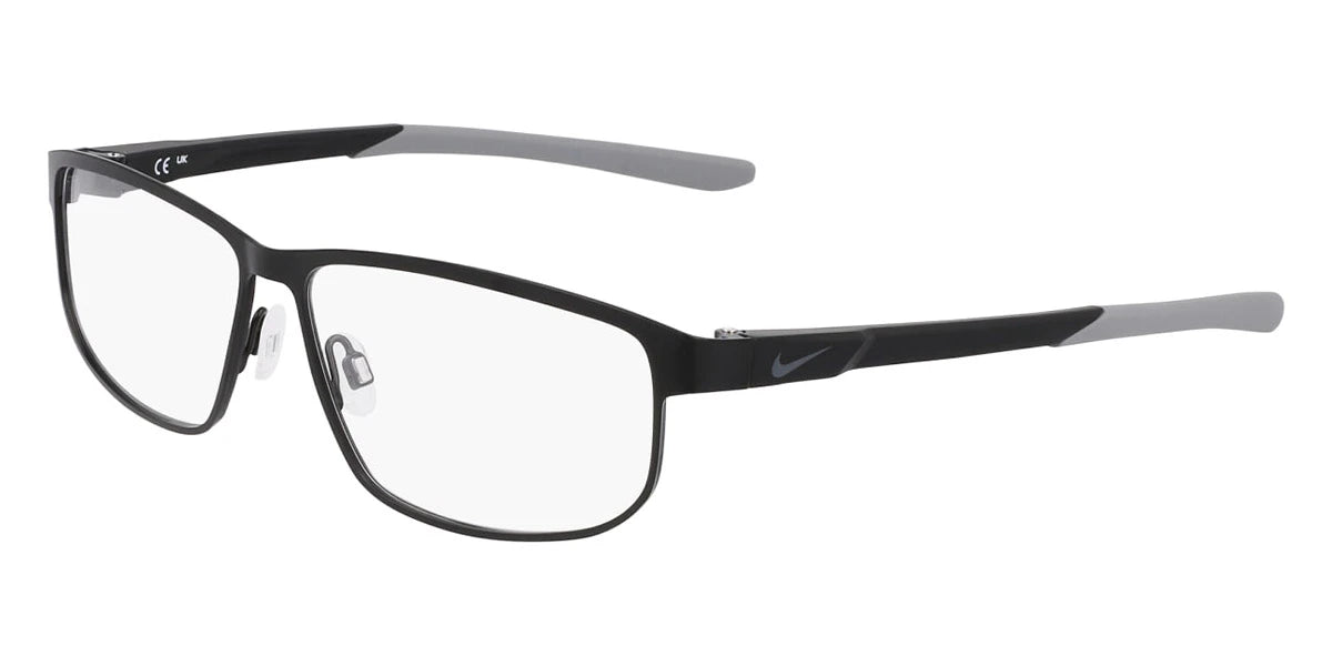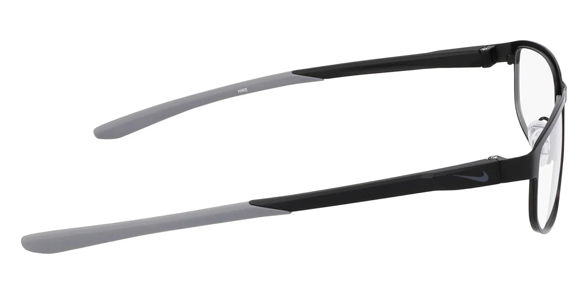 Matte Black/Smoke Gray (001) Eyeglasses (8157 001 56) by Nike™. Size: 56-12-145, Shape: Rectangle, Material: Metal.
