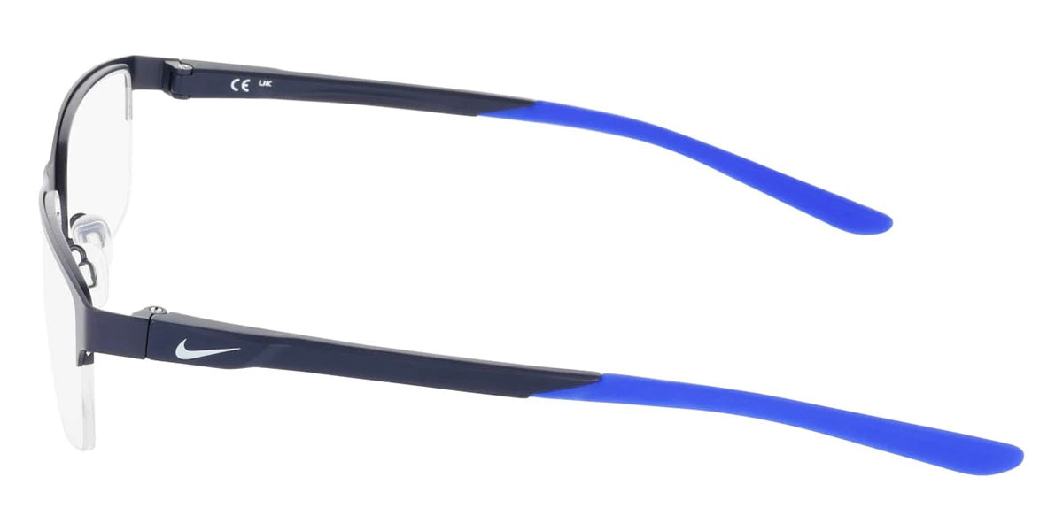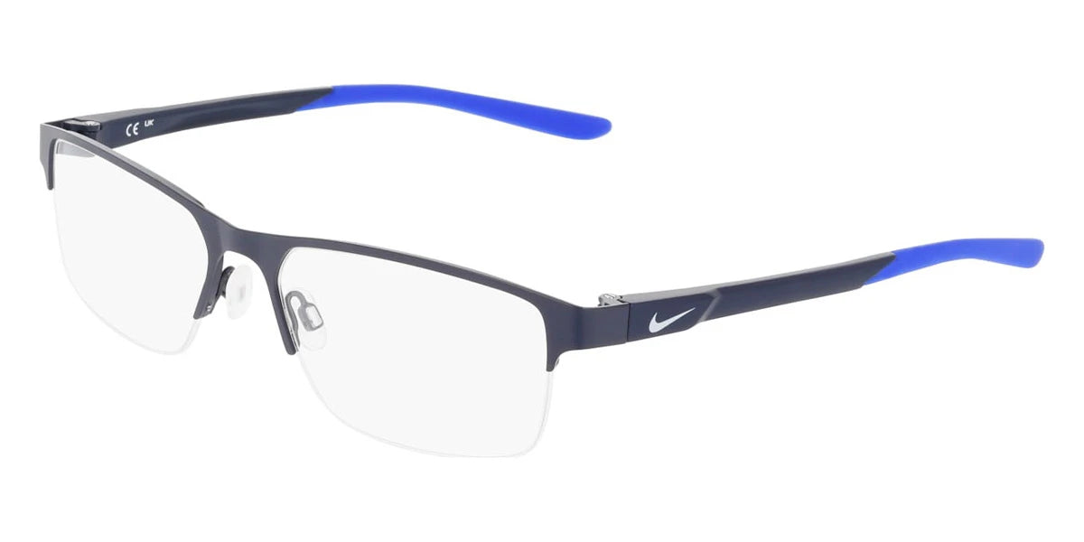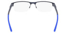 Matte Obsidian/Racer Blue (411) Eyeglasses (8159 411 57) by Nike™. Size: 57-17-145, Shape: Rectangle, Material: Metal.