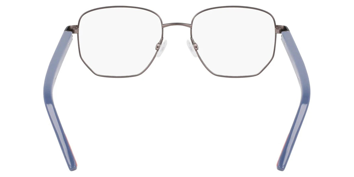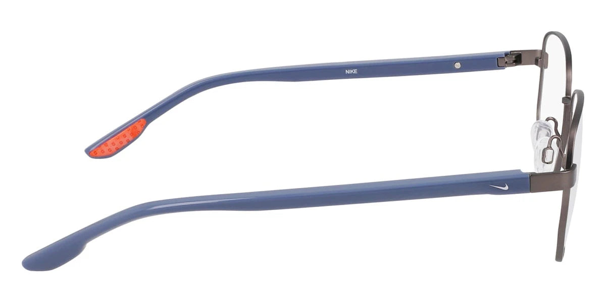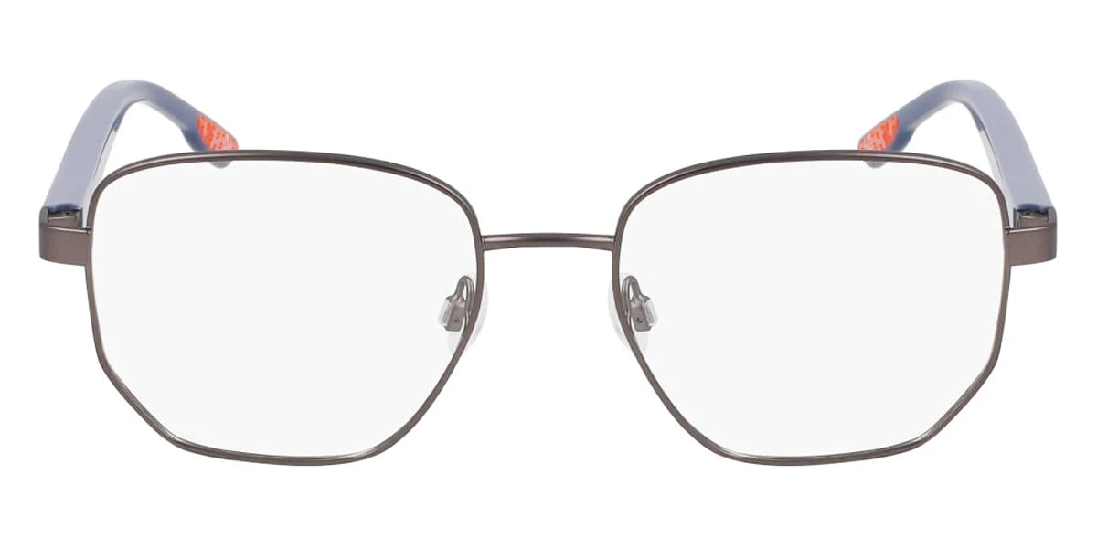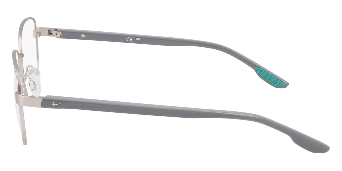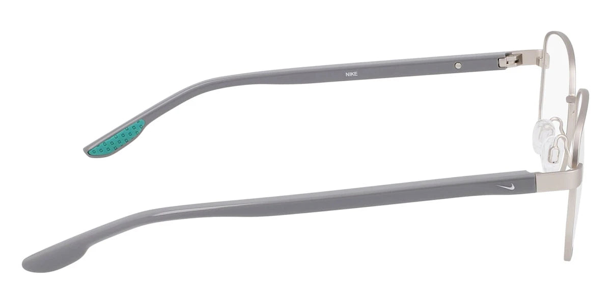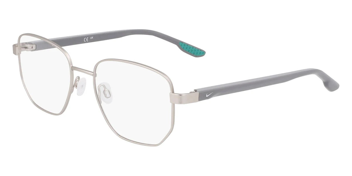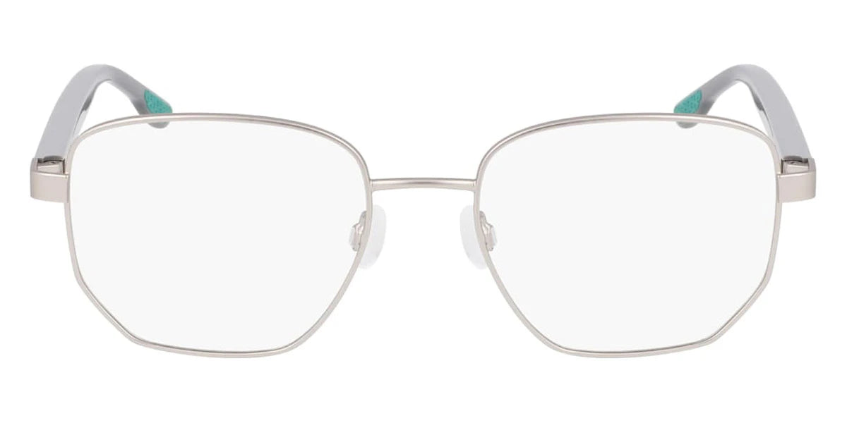 Satin Silver/Gray (045) Eyeglasses (8400 045 51) by Nike™. Size: 51-18-145, Shape: Round, Material: Metal.