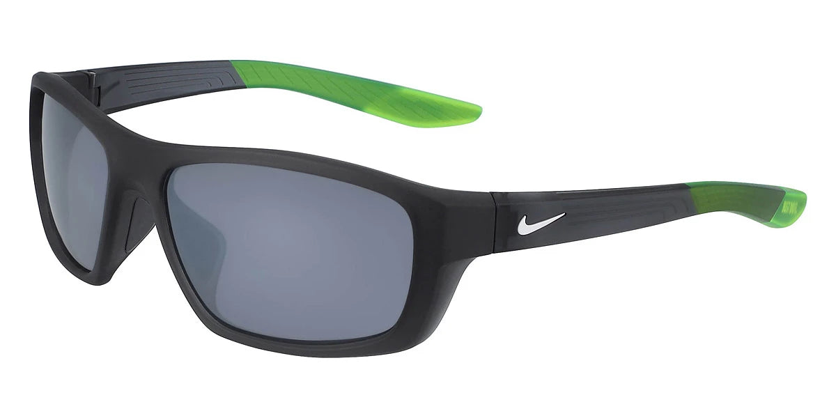 Matte Dark Gray/White (021) Sunglasses with Silver Flash lenses (BRAZEN BOOST FJ1975 021 57) by Nike™. Size: 57-16-130, Shape: Rectangle, Material: Bio Injected.