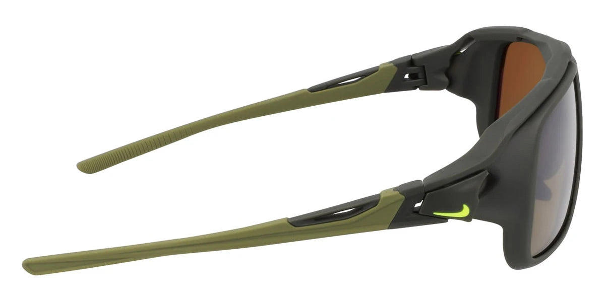Matte Sequoia/Terrain (355) Sunglasses with Volt lenses (FLYFREE SOAR E EV24002 355 59) by Nike™. Size: 59-15-130, Shape: Shield, Material: Injected.