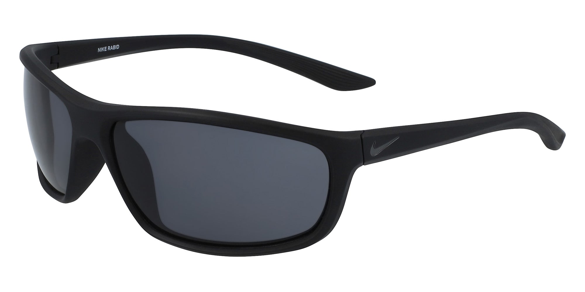 Matte Black (001) Sunglasses (RABID EV1109 001 64) by Nike. Size: 64-15-135, Shape: Rectangle, Material: TR90.