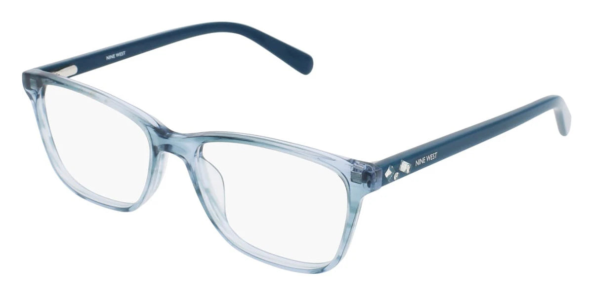 Aqua Crystal Horn (440) Eyeglasses (NW5187 440 51) by Nine West™. Size: 51-16-135, Shape: Rectangle, Material: Zyl.