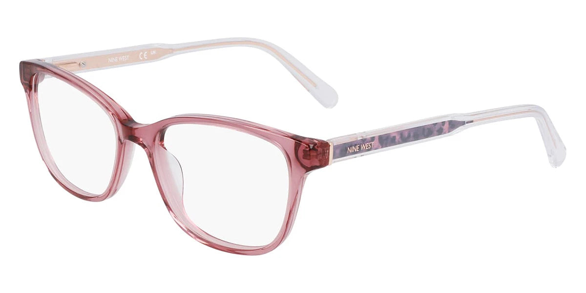 NW5216 Eyeglasses by Nine West™. The cat-eye shape design feature a full rim acetate frame. This model is available in four different color combinations and sizes. The history of the Nine West brand began in the late 70s of the last century. The brand occupied the first positions in the production of high quality comfortable women's shoes. And in the late 90s, the brand began its rapid development, covering other branches of fashion production. In addition to clothing, hats and hosiery, the company's assortment includes sunglasses and eyeglasses. The eyewear collections are attracted by the retro style of the 70s with a modern interpretation. Nine West glasses are immediately recognizable for their sophistication, feminine silhouettes, unexpected shades and combinations of metal and plastic. Many of the exclusive frame designs are inspired by the brand's clothing and footwear collections.