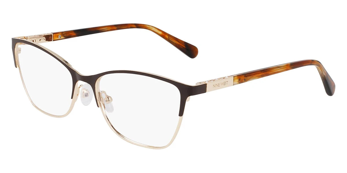 Brown/Gold (200) Eyeglasses (NW8022 200 53) by Nine West™. Size: 53-16-140, Shape: Cat-Eye, Material: Metal.