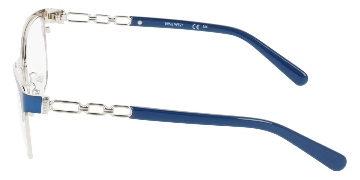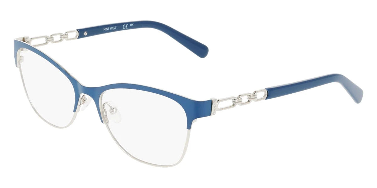 Denim Blue/Silver (400) Eyeglasses (NW8024 400 53) by Nine West™. Size: 53-17-140, Shape: Round, Material: Metal.