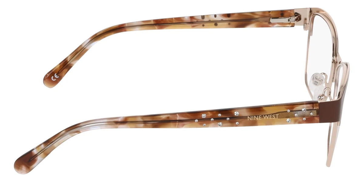 Brown/Gold (210) Eyeglasses (NW8025 210 56) by Nine West™. Size: 56-17-140, Shape: Rectangle, Material: Metal.