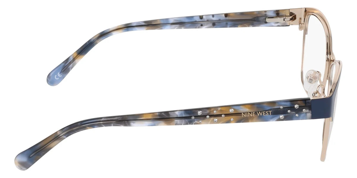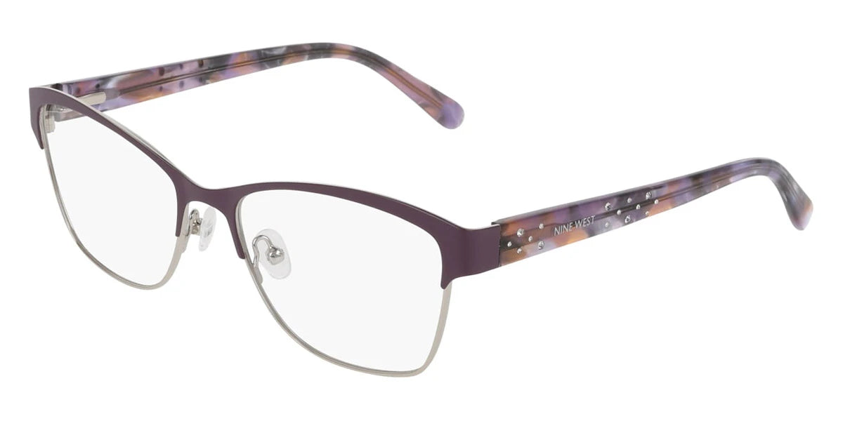 NW8025 Eyeglasses by Nine West™. The rectangle shape design feature a full rim metal frame. This model is available in four different color combinations and sizes. The history of the Nine West brand began in the late 70s of the last century. The brand occupied the first positions in the production of high quality comfortable women's shoes. And in the late 90s, the brand began its rapid development, covering other branches of fashion production. In addition to clothing, hats and hosiery, the company's assortment includes sunglasses and eyeglasses. The eyewear collections are attracted by the retro style of the 70s with a modern interpretation. Nine West glasses are immediately recognizable for their sophistication, feminine silhouettes, unexpected shades and combinations of metal and plastic. Many of the exclusive frame designs are inspired by the brand's clothing and footwear collections.