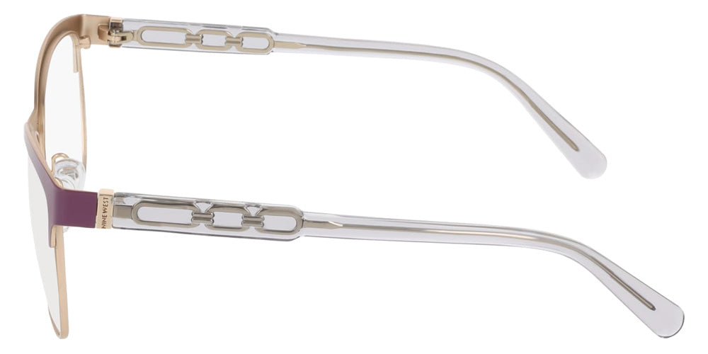 Deep Mauve (560) Eyeglasses (NW8027 560 56) by Nine West. Size: 56-16-140, Shape: Cat-Eye, Material: Metal.