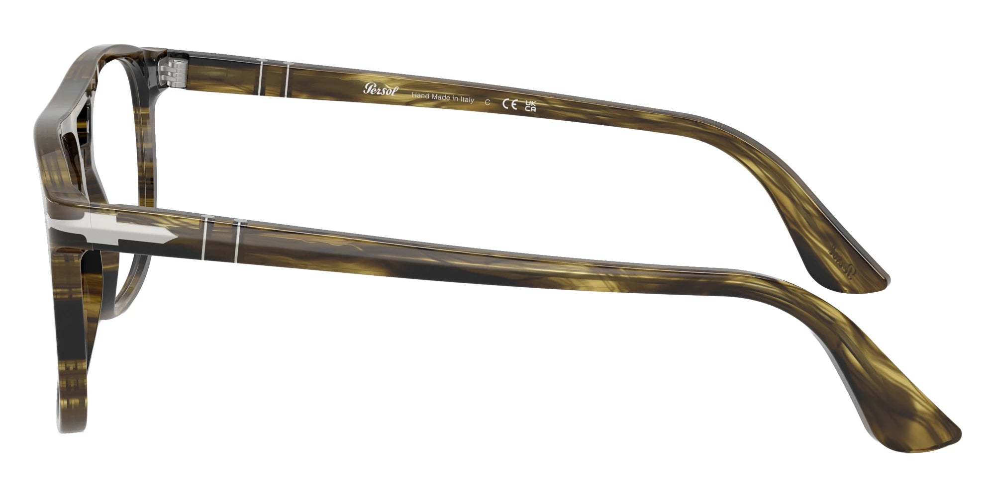 Greta PO3329V Eyeglasses by Persol™. The aviator shape design feature a full rim acetate frame. This model is available in eight different color combinations and sizes. Persol is one of the oldest and most iconic eyewear brands. It is instantly recognizable for its arrow logo, which reflects the tenacity of the company founder Giuseppe Ratti. Experimenting with innovative materials, the company has developed products with unique characteristics. Every detail of Persol accessories is handcrafted using the highest quality materials. Persol was one of the first to make glasses from cellulose acetate. Due to the naturalness and hypoallergenic properties of this material, the brand's glasses do not irritate the skin and contribute to maximum comfort.