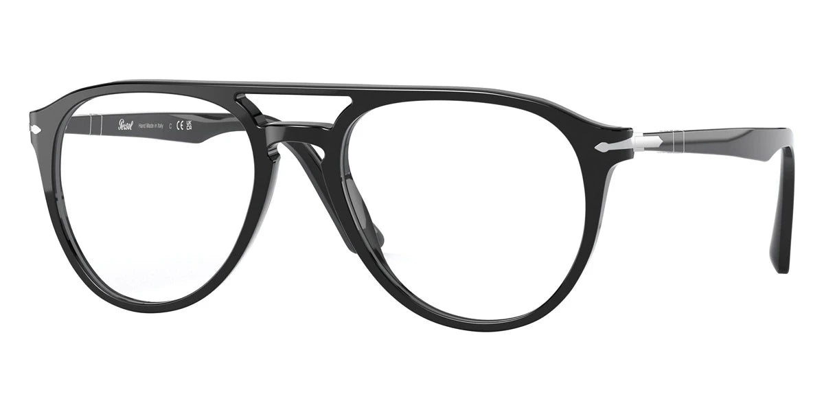 Black (095) Eyeglasses (PO3160V 095 52) by Persol™. Size: 52-18-145, Shape: Aviator, Material: Acetate.