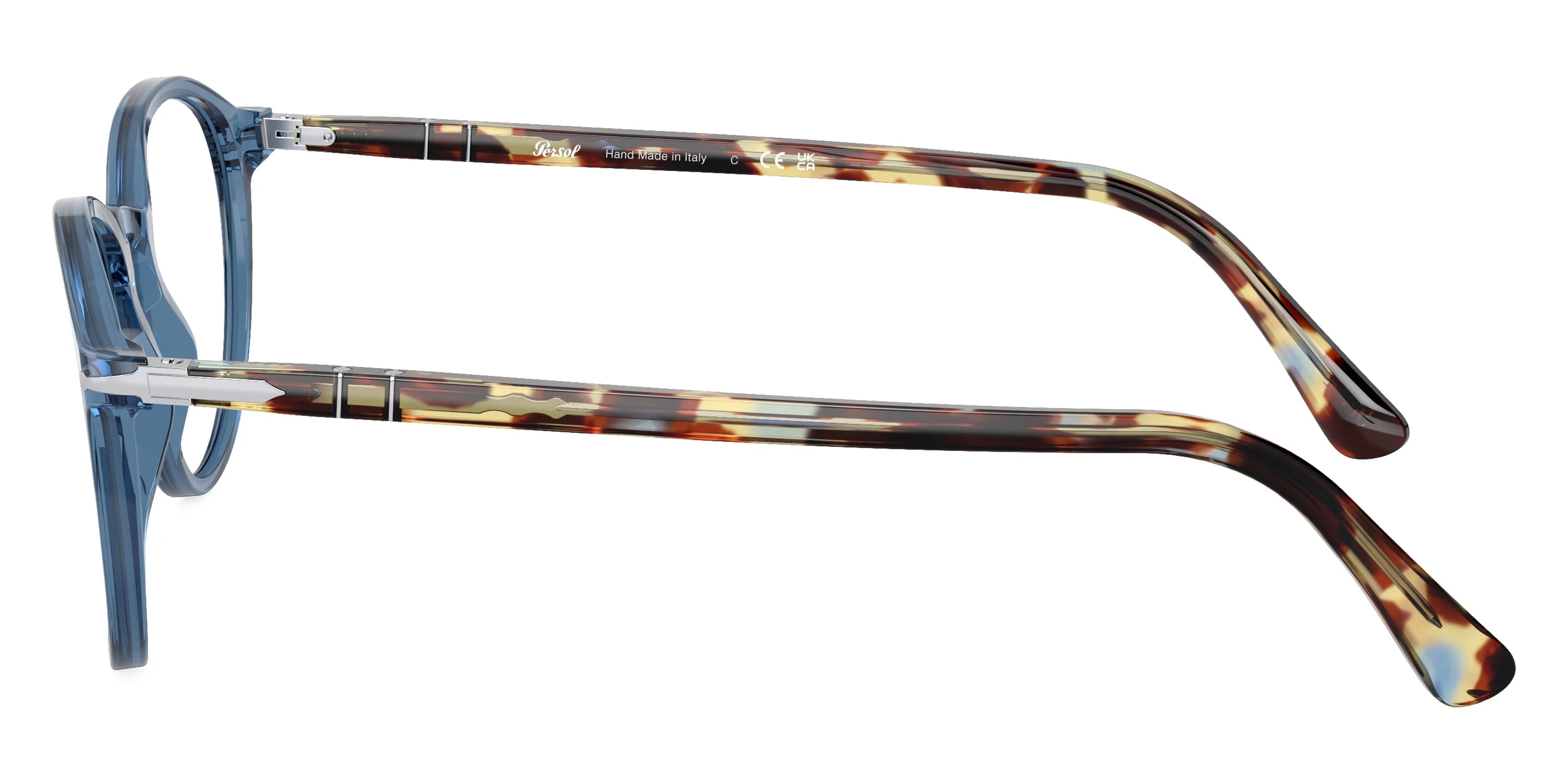 Transparent Navy/Blue/Brown Tortoise (1202) Eyeglasses (PO3218V 1202 51) by Persol™. Size: 51-21-145, Shape: Wayfarer, Material: Acetate.