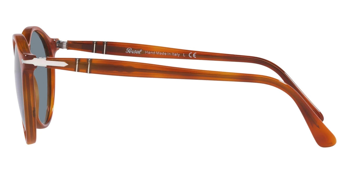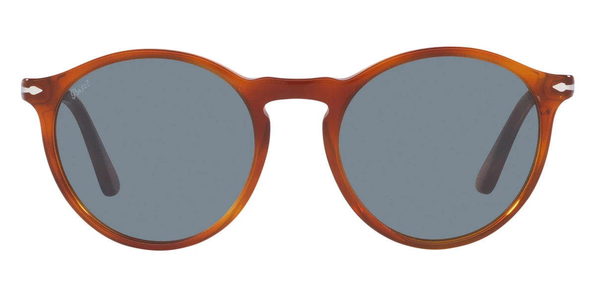 Terra Di Siena/Bronze (96/56) Sunglasses with Light Blue lenses (PO3285S 96/56 52) by Persol™. Size: 52-19-140, Shape: Round, Material: Acetate.