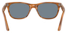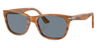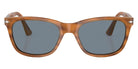 Striped Brown (960/56) Sunglasses with Light Blue lenses (PO3291S 960/56 57) by Persol™. Size: 57-19-145, Shape: Rectangle, Material: Acetate.