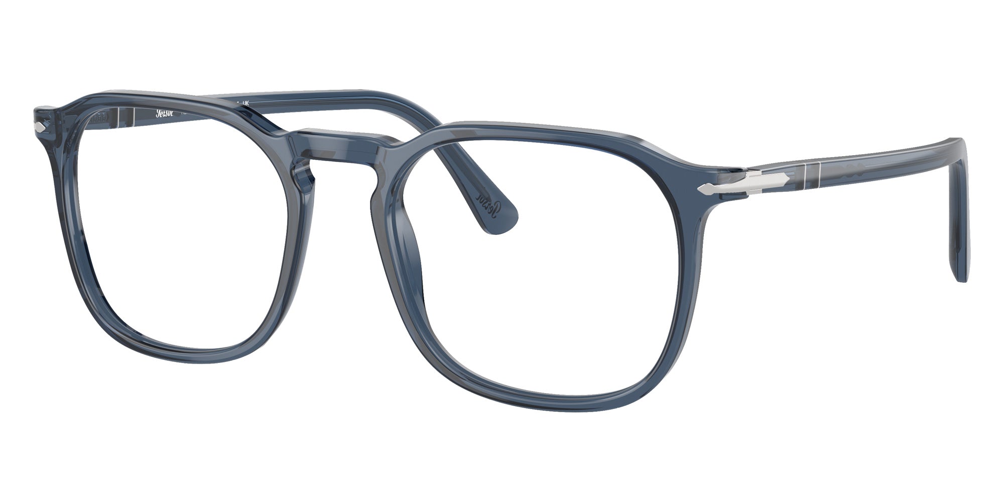 Transparent Blue (1197) Eyeglasses (PO3337V 1197 52) by Persol. Size: 52-19-145, Shape: Wayfarer, Material: Acetate.