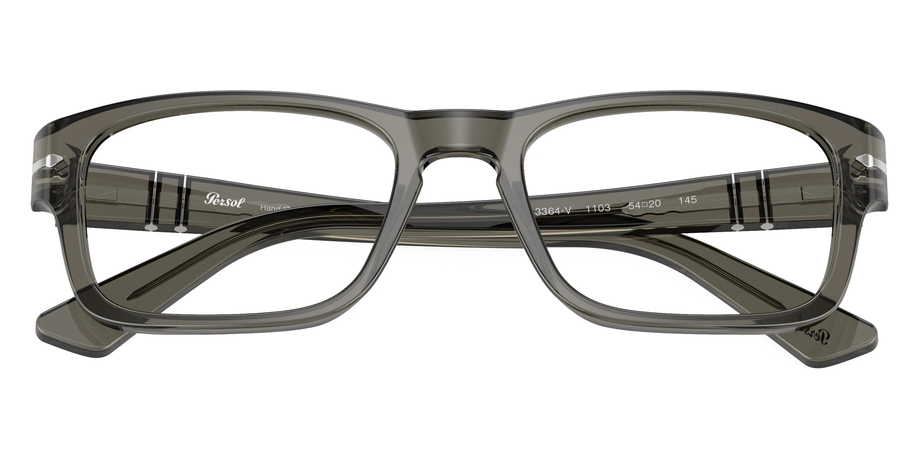 Smoke (1103) Eyeglasses (PO3364V 1103 56) by Persol™. Size: 56-20-145, Shape: Rectangle, Material: Acetate.